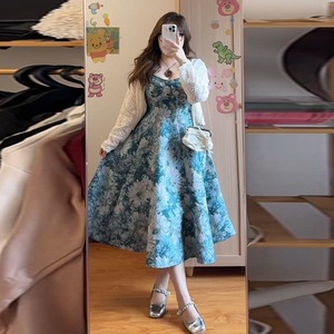 秋季套装女2025新款时尚开衫外套女搭配显瘦碎花吊带连衣裙两件套
