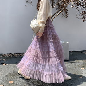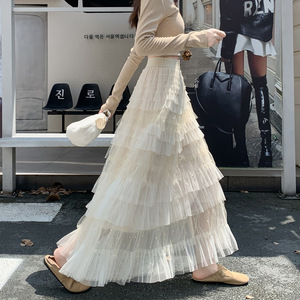 仙气重工网纱A字裙女秋冬长款设计感小众显瘦大摆长裙