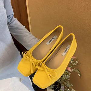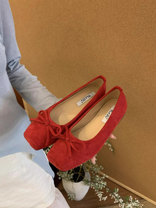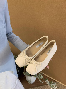 4cm内增高复古方头芭蕾舞鞋软皮蝴蝶结浅口小个子平底单鞋女秋款