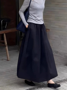 黑色花苞半身裙女早秋2025新款松紧腰遮垮显瘦高腰中长大摆长裙子