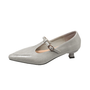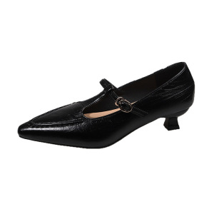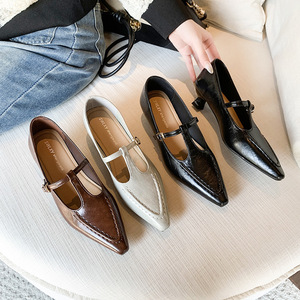 春季法式复古T字带玛丽珍鞋柔软学院风尖头浅口平底单鞋女