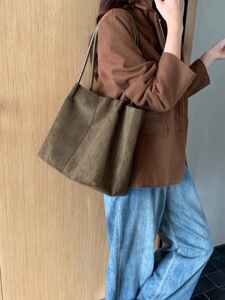 韩版大容量复古百搭托特包小众设计慵懒休闲单肩包腋下子母包大包