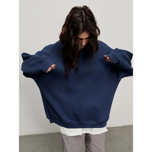 2025秋冬季洋气百搭潮流个性纯色小众加厚圆领卫衣慵懒风遮肉上衣