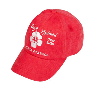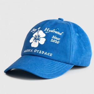 新款显脸小百搭时尚扶桑花刺绣夏威夷弯檐帽蓝色红色水洗纯棉棒球