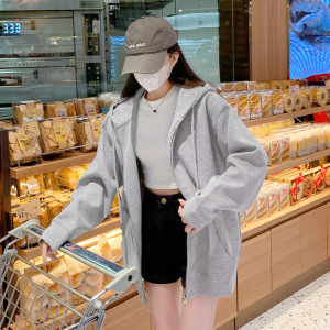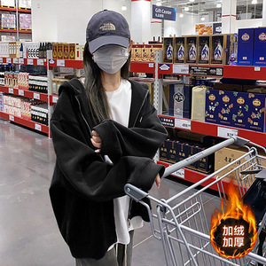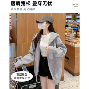 外套女连帽2025新款秋冬季灰色休闲卫衣早薄款宽松开衫秋韩系慵懒