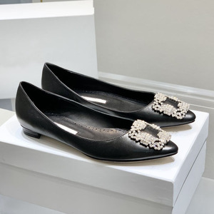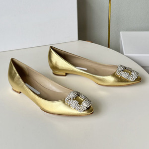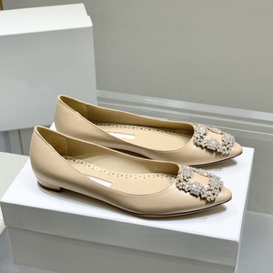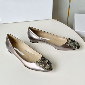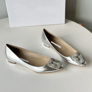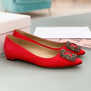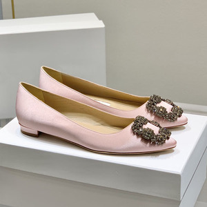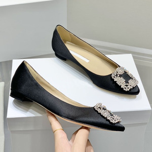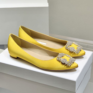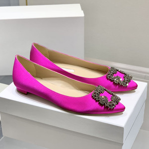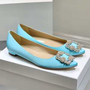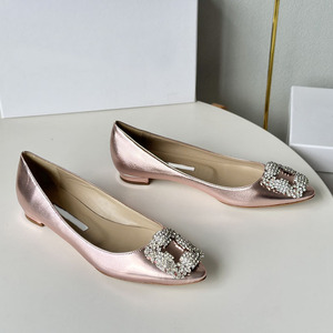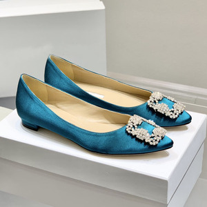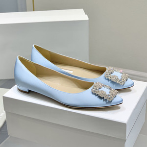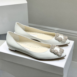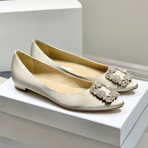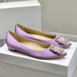 经典mb水钻单鞋女真丝尖头雪花方扣浅口绸缎气质平底宴会伴娘婚鞋