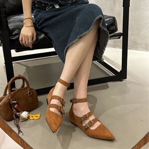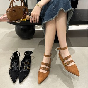 2025新款复古尖头玛丽珍鞋女百搭内增高铆钉一字带扣浅口单鞋