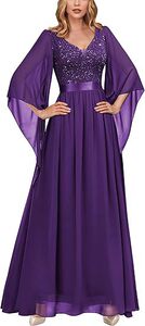 跨境大码晚礼服2025新款优雅v领雪纺修身大摆长款速卖通宴会礼服