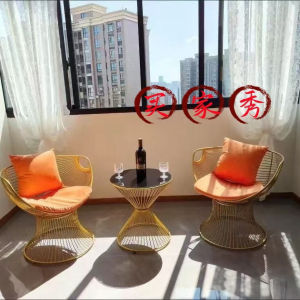 新款现代阳台休闲桌椅沙发椅茶几三件套简约美容院洽谈桌椅组合