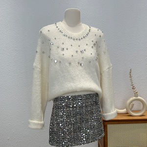 设计感重工烫钻长袖毛衣女秋冬时尚宽松显瘦针织衫别致慵懒风上衣