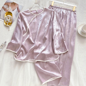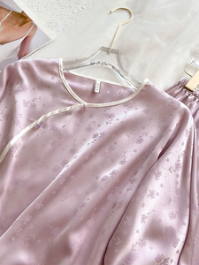 奢华睡衣女春秋感气质长袖长裤真丝古风睡衣中国风家居服套装