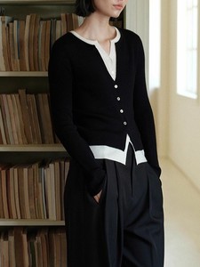 谁桃子 简约知识分子扬子纱羊毛撞色假两件针织衫女内搭秋季上衣