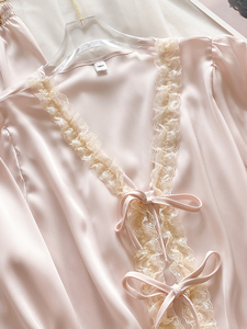 甜美公主风真丝睡衣女春秋季长袖桑蚕丝绸缎感家居服套装夏天