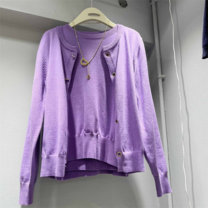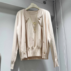 经典百搭2025秋新款针织开衫圆领长袖外套外搭+套头针织两件套女