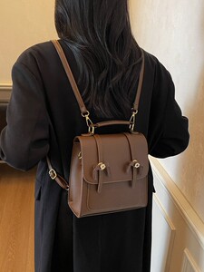 外贸英伦复古双肩包女2025新款秋冬学生双肩背包多功能书包手提包