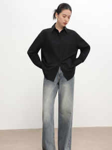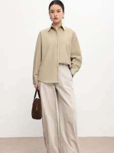 25秋季新款女装半门襟免烫易打理衬衫宽松遮肉静奢上衣长袖衬衣