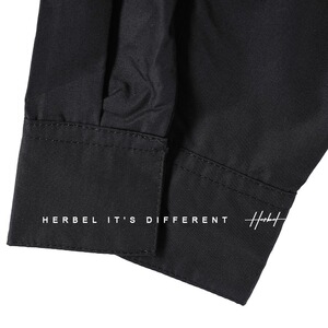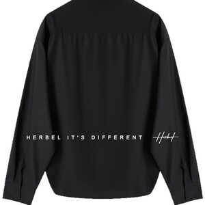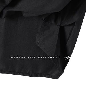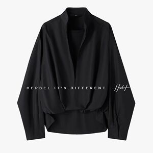 HERBEL/黑白V领假两件长袖衬衫秋季新款纯色前短后长衬衣