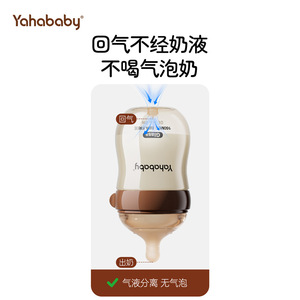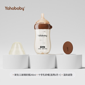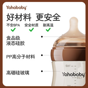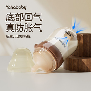 Yahababy底部防胀气高硼硅玻璃奶瓶新生儿正品耐高温奶瓶底部回气