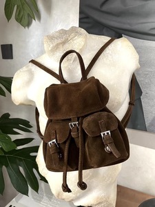头层牛皮双肩书包双口袋翻盖设计单肩通勤美拉德复古真皮磨砂背包