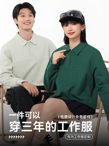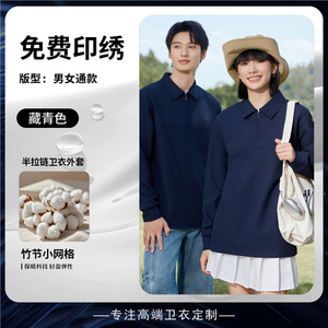 墨绿色半拉链polo衫定制工作服印logo员工秋冬季长袖开衫卫衣外套