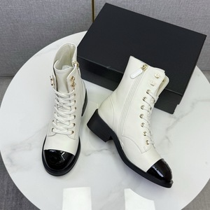 对版小香风拼色系带马丁靴女2025秋冬款方头粗跟英伦风气质中筒靴