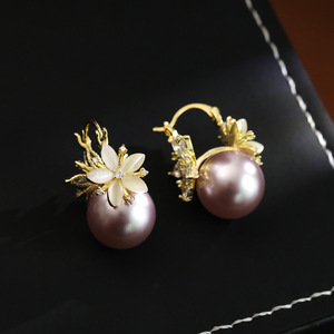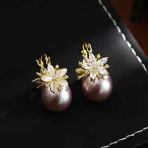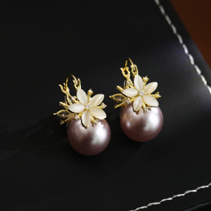 超仙气质花朵耳环双面设计猫眼石锆石重工高级感曼塔紫色珍珠耳钉