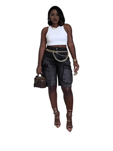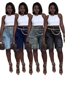 D8592 春夏新款牛仔破洞草洗工装口袋牛仔裤亚马逊独立站国际站款