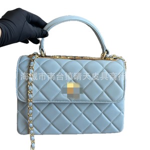 小香家新款Trendy CC真皮手提小方包菱格手柄链条包单肩包通勤包