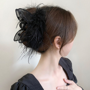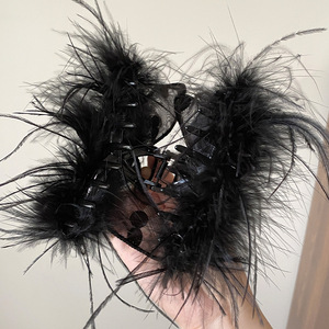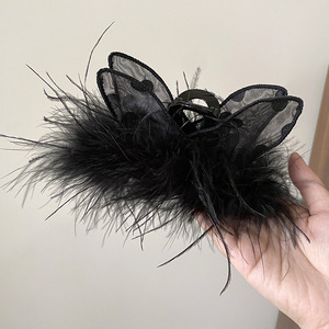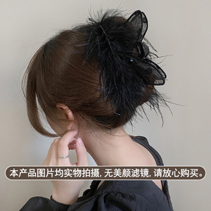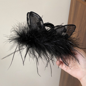 秋冬纯欲风黑色兔耳羽毛抓夹2025新款高端高级感后脑勺毛毛发夹女