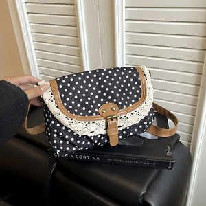 2025新款韩版波点小众设计花边包包女士单肩斜挎包高级感圆点布包
