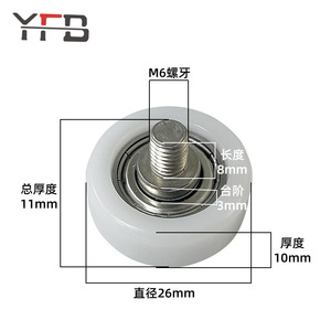 不锈钢包胶轴承带螺杆聚氨酯滑轮传送带滚压轮626轴承静音耐磨轮