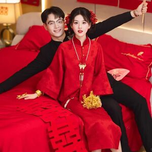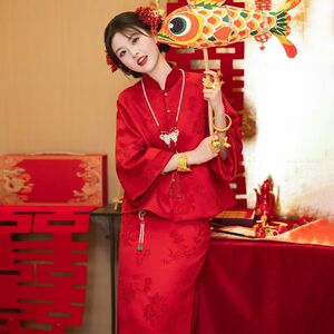新款婚服敬酒服旗袍新中式新娘订婚礼服套装轻奢红色结婚晨袍