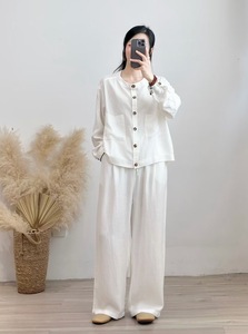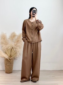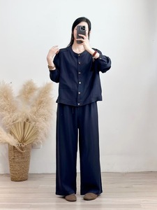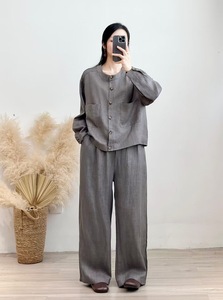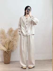 2025秋季新款圆领单排扣大口袋设计上衣搭配同色系气质百搭休闲裤