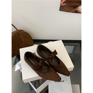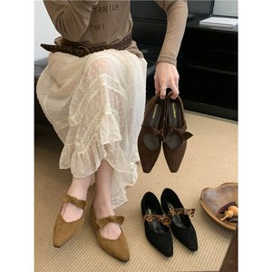 法式尖头豹纹蝴蝶结单鞋女2025夏季新款绒面复古风奶奶鞋小众瓢鞋
