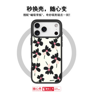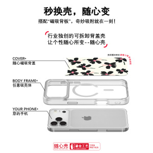 适用苹果17手机壳高级感16可换背板15promax磁吸手机壳油画花卉