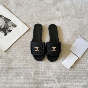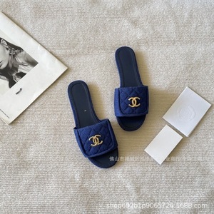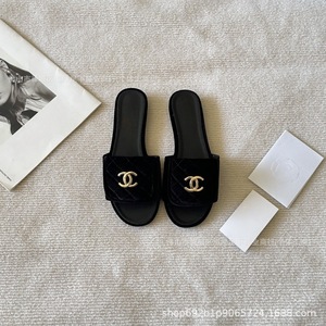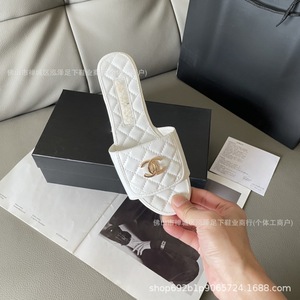香家 菱格书包扣2025年小香风夏季新款一字时尚女外穿法式平底拖