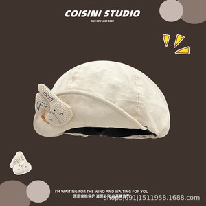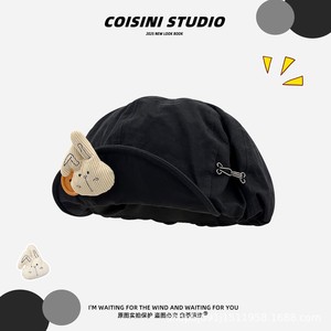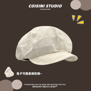 日系可爱纽小兔画家帽子女生春秋休闲百搭显脸小贝雷帽八角帽潮