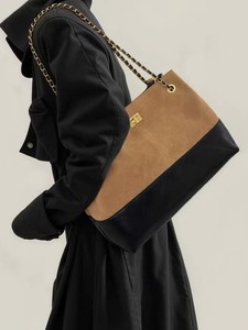 2025秋冬新款磨砂麂皮拼皮小香风菱格链条托特大容量单肩斜挎包女