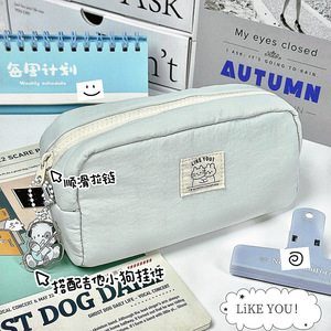 韩版小众ins蓝色简约刺绣猫咪笔袋大容量纯色收纳袋学生文具笔盒