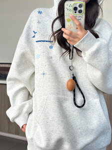 国潮牌美式白灰色刺绣纯棉卫衣女秋季薄款宽松连帽小众高街外套女