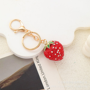热销时尚创意精美满钻草莓钥匙扣挂件简约精美女包包车钥匙扣挂饰