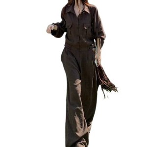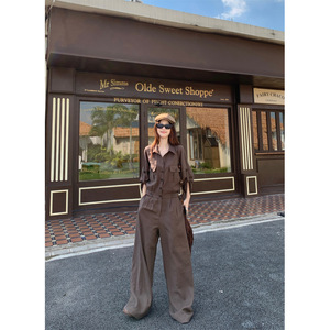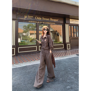 酷姐实穿休闲裤一整套穿搭2025秋季UUS美式复古老钱风工装连体裤