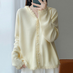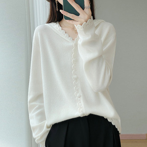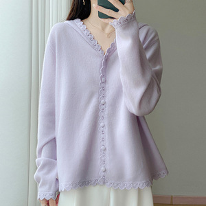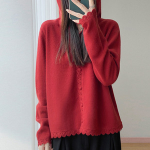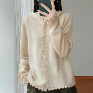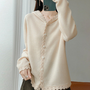 连帽花边减龄针织开衫2025秋冬新款百搭洋气休闲长袖显瘦外套上衣