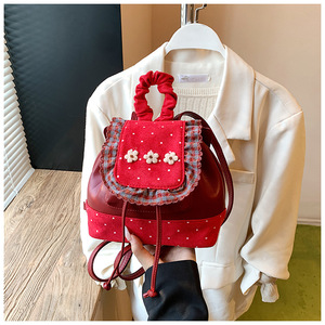跨境复古双肩包女时尚小众设计学生书包韩版水桶包高颜值旅游背包