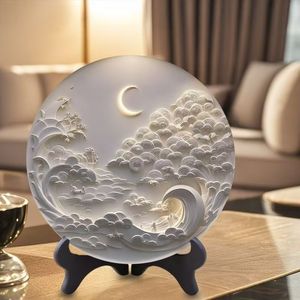 浮壁壁画立体感图片紧致圆盘摆台客厅玄关书房创意装饰画桌面摆件