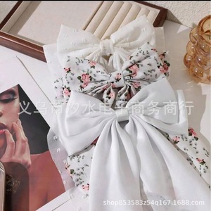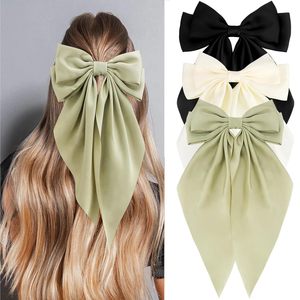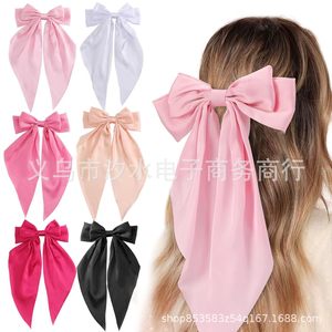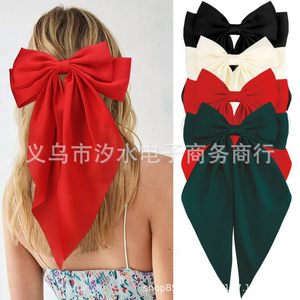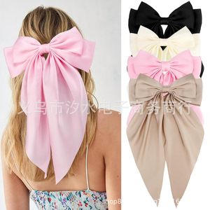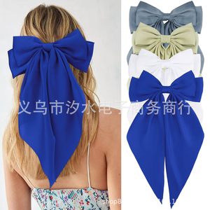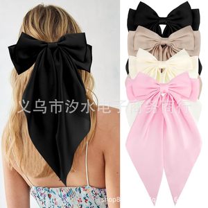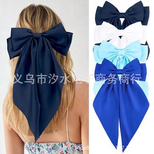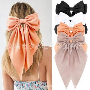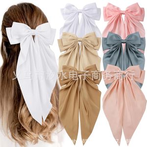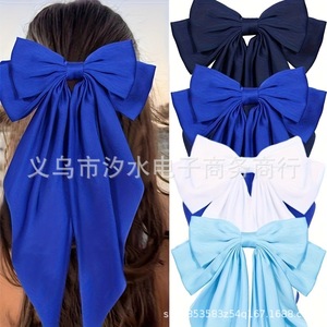 跨境专供热销组合纯色超大号复古双层蝴蝶结飘带发夹女弹簧夹发饰