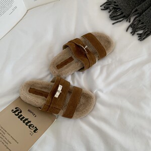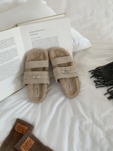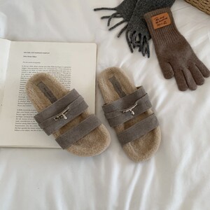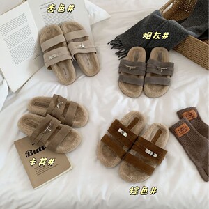 2025早秋新款小个子厚底毛绒茸茸棉拖鞋女外穿居家毛毛鞋