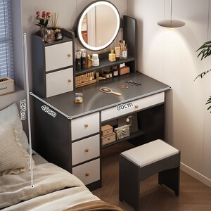 +升级性价比高LED灯【四抽两柜+凳子】80cm 雾灰色+