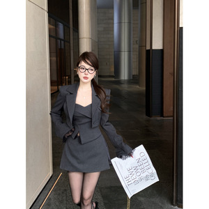 纯欲御姐西装套装显瘦长袖短外套百搭抹胸短裙三件套套装女