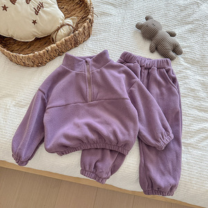 2025秋款婴童双面绒立领运动套装婴儿春秋加绒套装宝宝外穿两件套